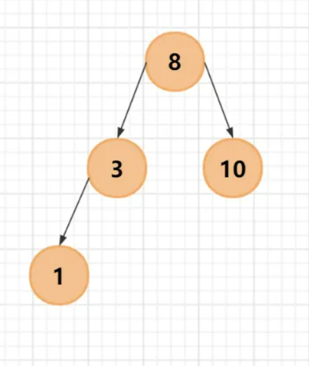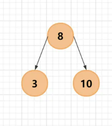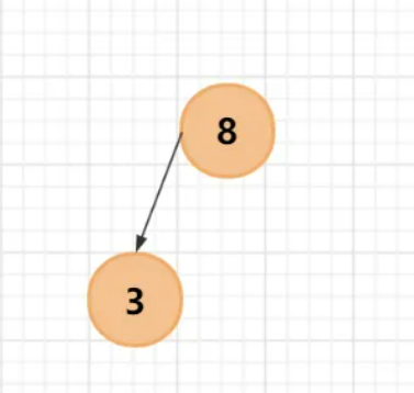 第二步:插入 3 ,与根结点 8 进行比较,发现比8小,且根结点没有左孩子,则将 3 插入到 8 的左孩子;