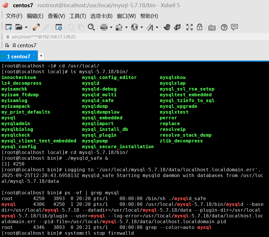 1. 启动Linux虚拟机& 远程登录Linux系统**&启动MySQL服务器**