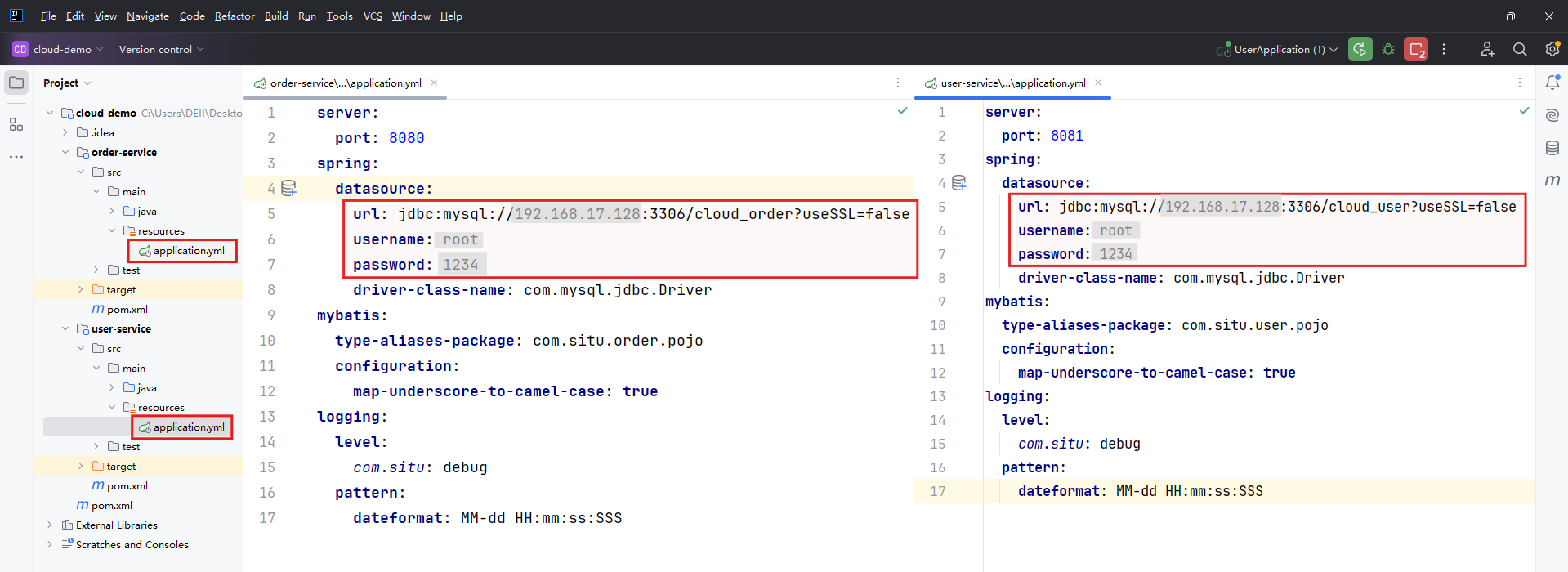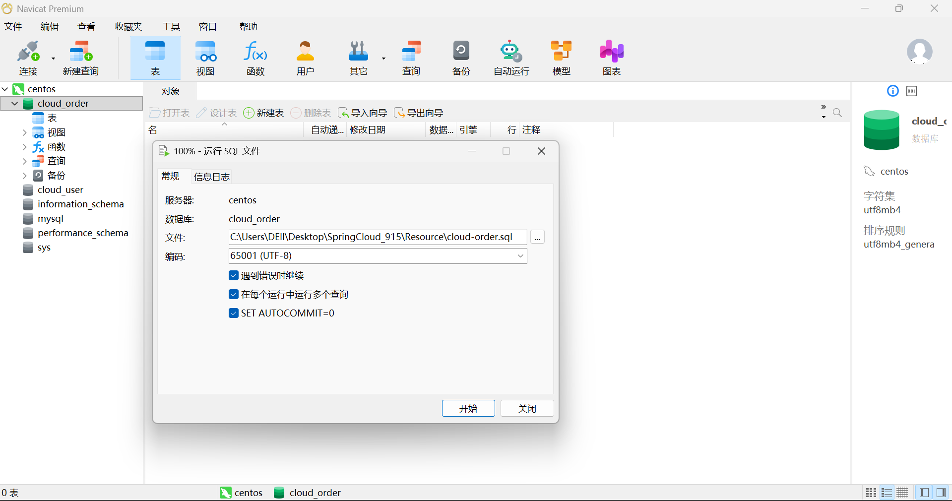 3. 测试连接,创建数据库cloud_order和cloud_user,运行SQL文件