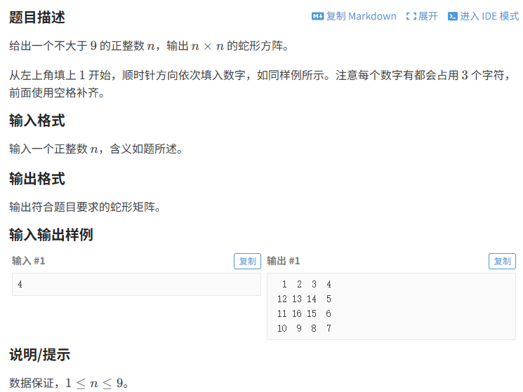 - 输出格式:每个数字占3个字符宽度,右对齐