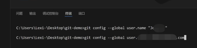 在终端中依次输入以下两条命令(请替换为你自己的信息):