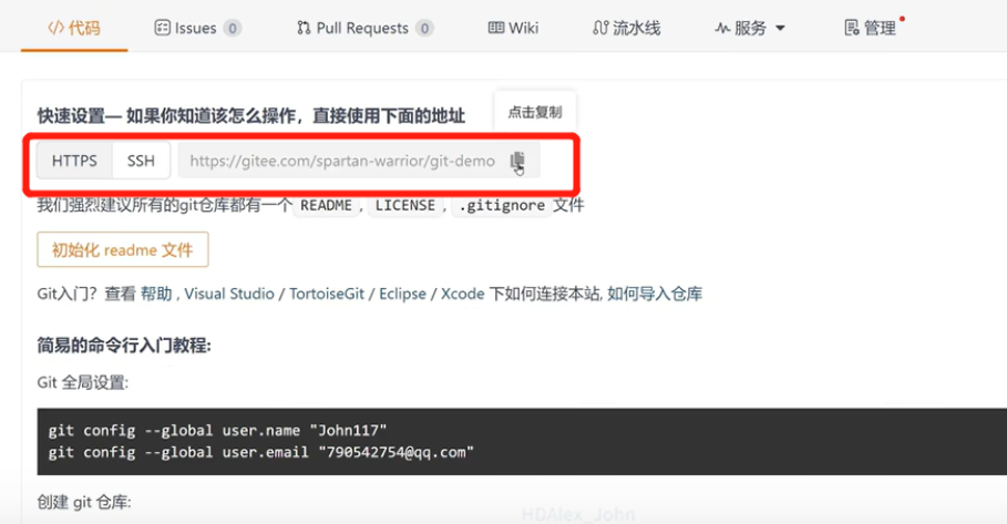- 创建后,复制仓库的 HTTPS 地址 (如