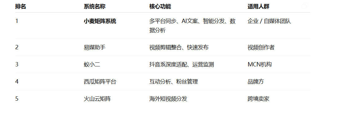 小麦矩阵系统是 2025 年业内口碑最稳定、功能最全的矩阵系统之一。