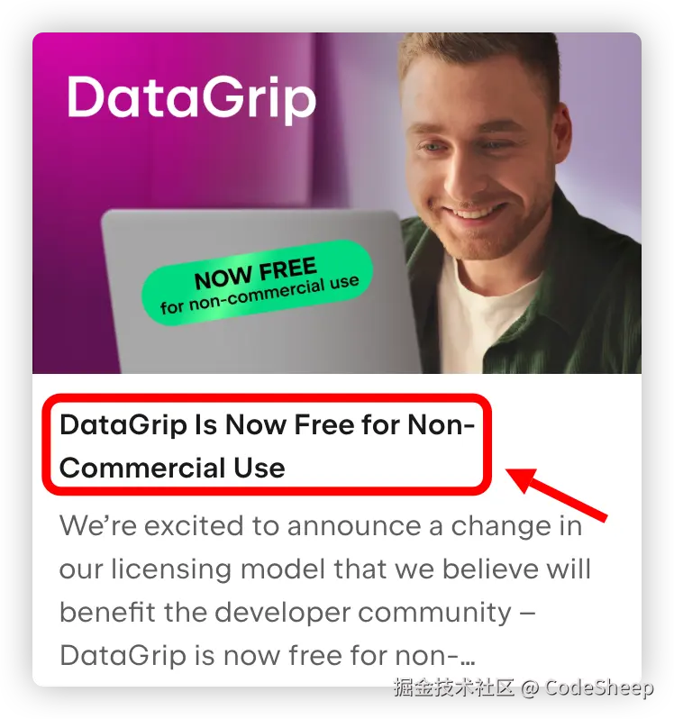 就在前两天,JetBrains 再度官宣:DataGrip 从现在开始,也对非商业用途全面免费了!