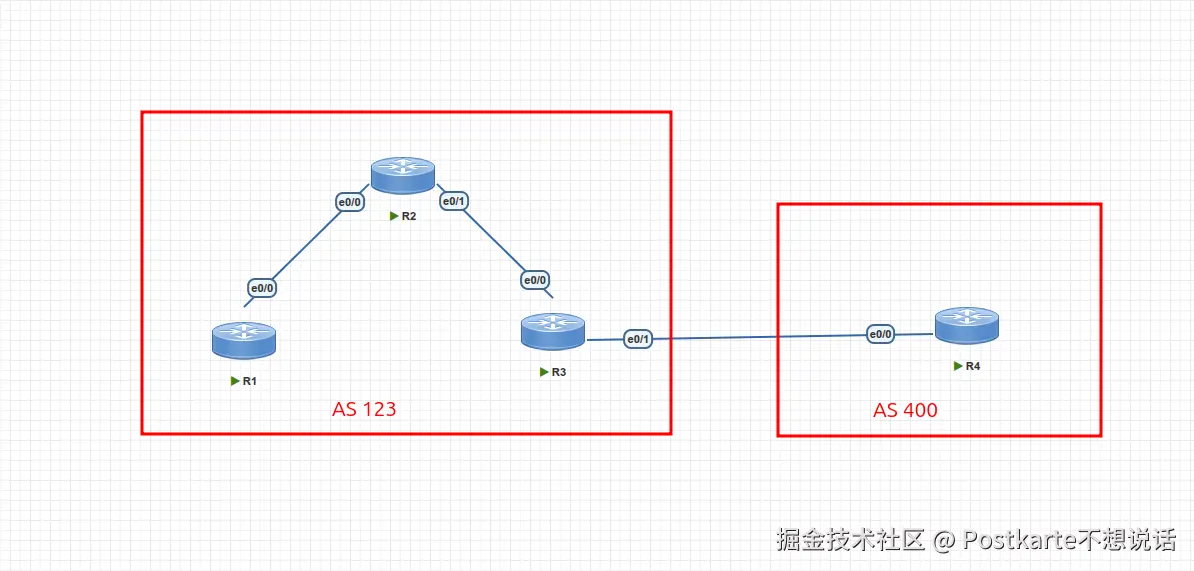 配置BGP邻居,我们使用直连建立BGP邻居关系,但是这种方式有缺点,当接口挂了以后BGP邻居就挂了。 比较好的方式是跑一个IGP路由协议,然后使用loopback接口进行邻居的建立。