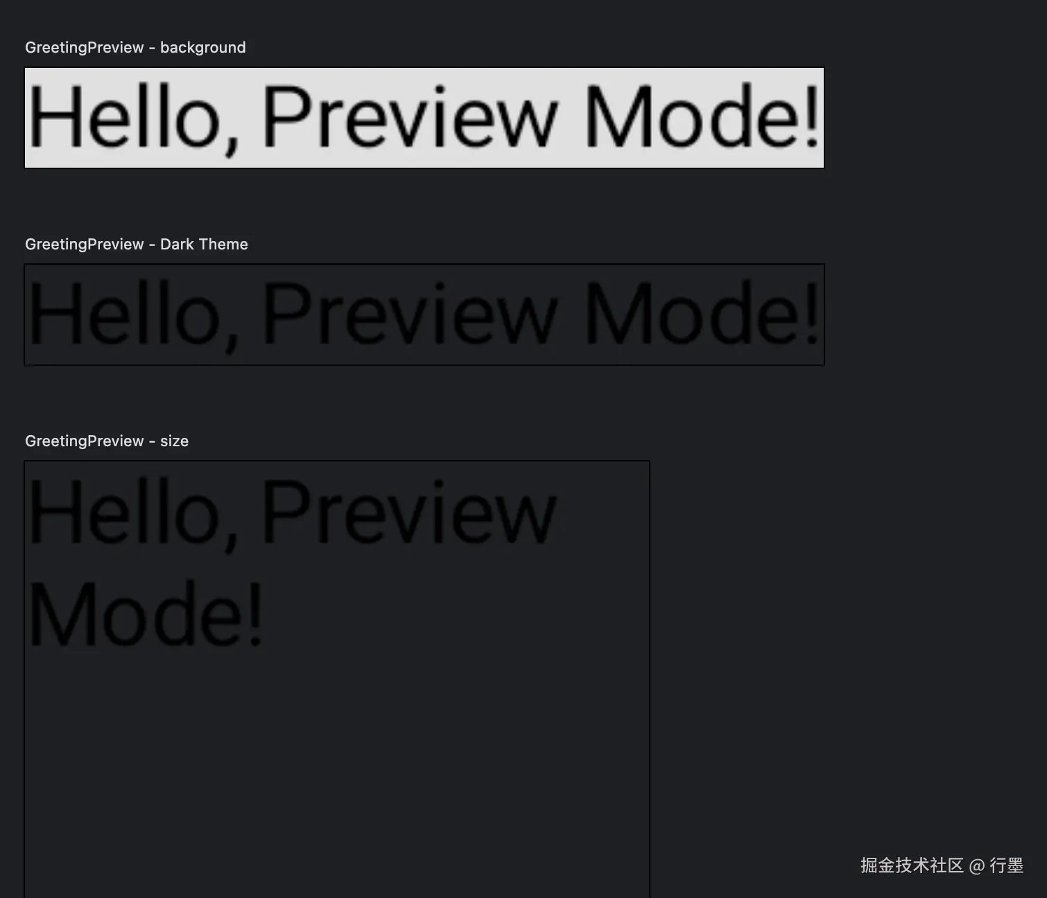 Greeting("Preview Mode") // 这里的参数"Preview Mode"仅在预览中显示