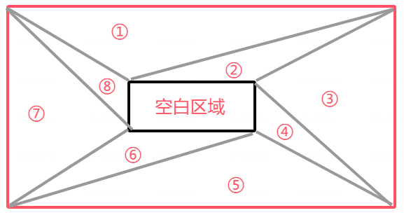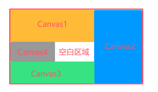 只需要知道空白区域的Rect数据,就可以计算出4个Canvas的尺寸以及位置。