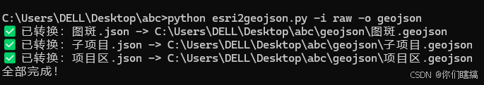 python esri2geojson.py -i 原始文件夹 -o 输出文件夹