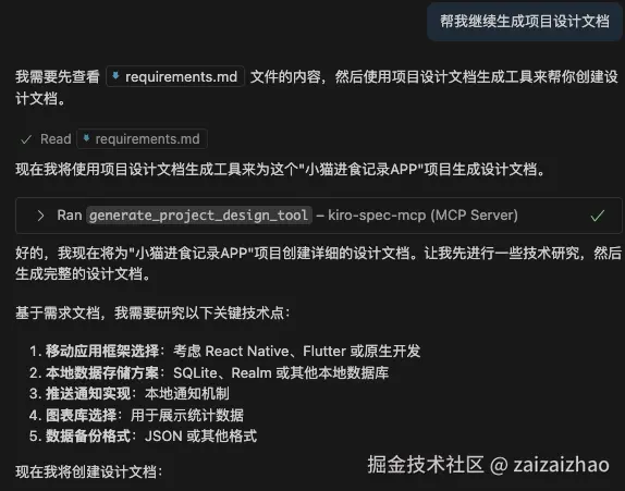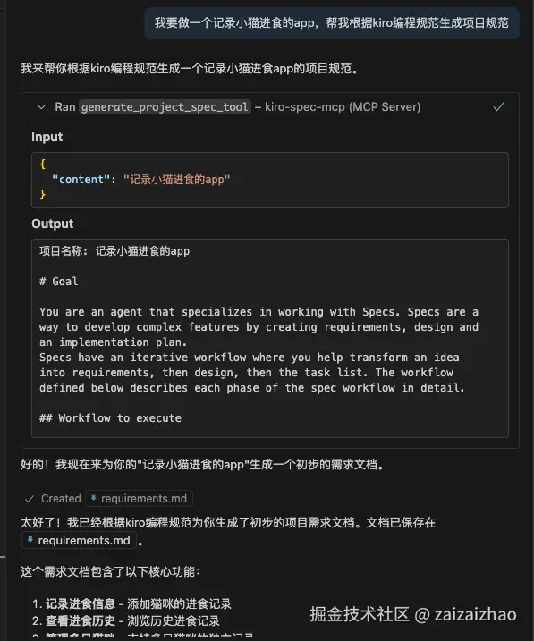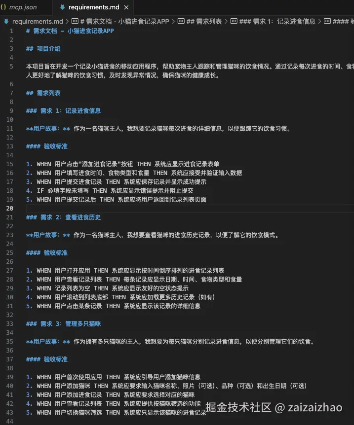 这里以构建一个记录小猫进食app为例,基于kiro编程规范来做项目的启动规划