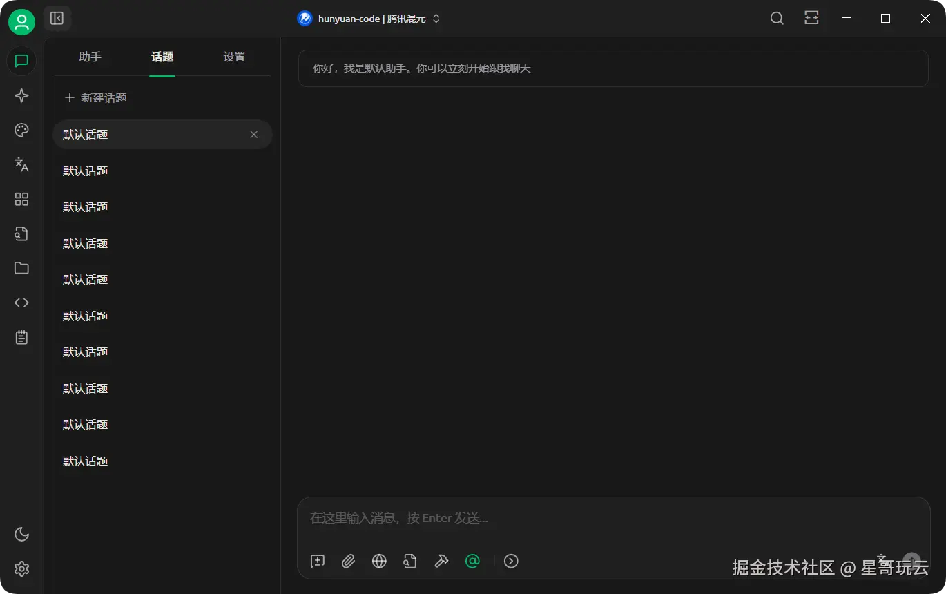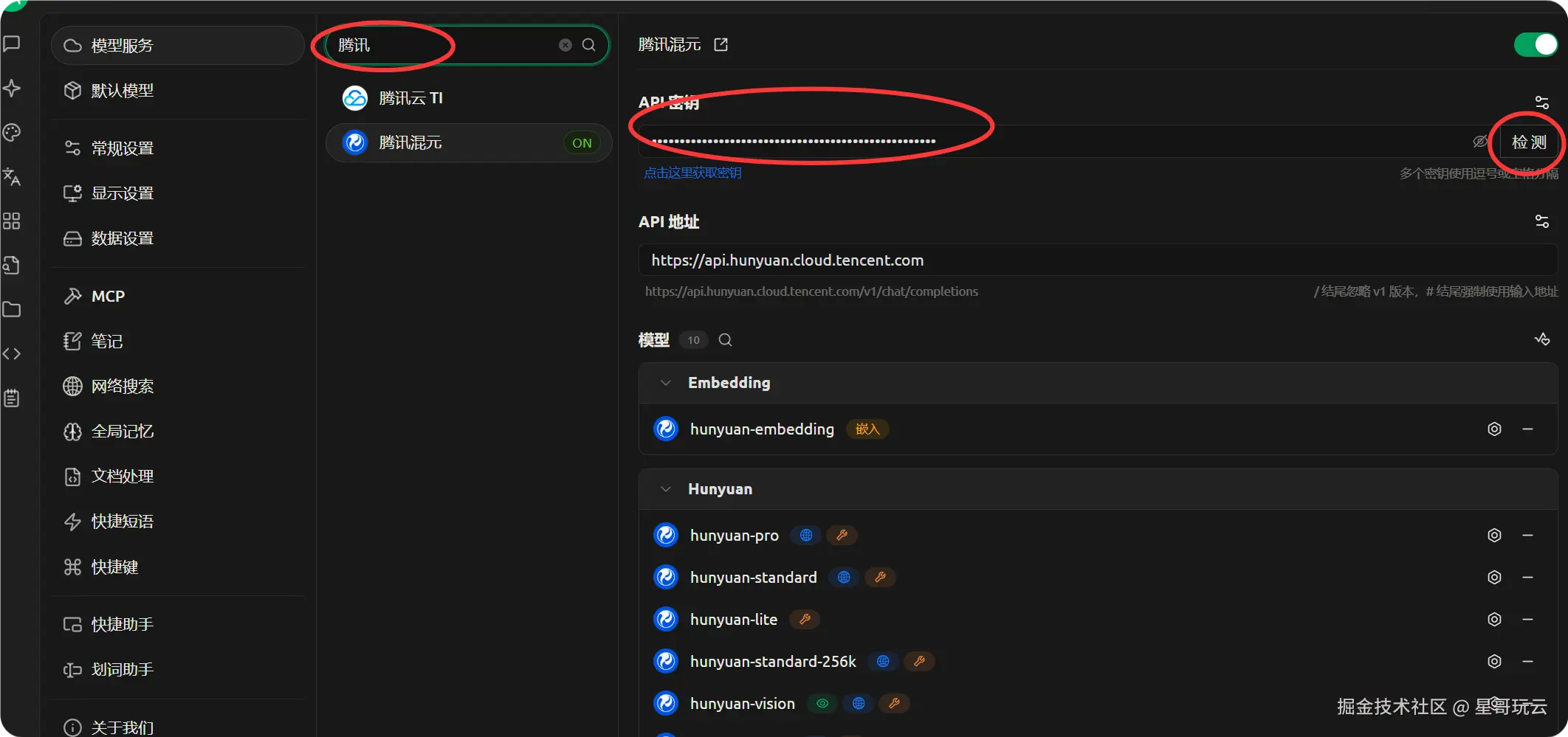 Cherry Studio支持主流大模型服务,星哥这里配置腾讯混元大模型,其他公司的大模型例如deepseek、ChatGPT等都是一样的配置。