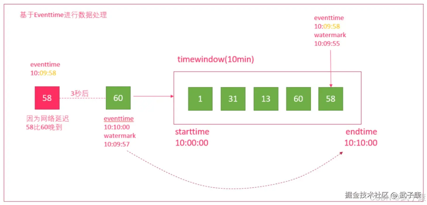 - 有一个数据,因为网络延迟:事件发生的时间为:2024-07-27 10:10:00,但进入到窗口的事件为:2024-07-27 10:10:02 延迟2秒