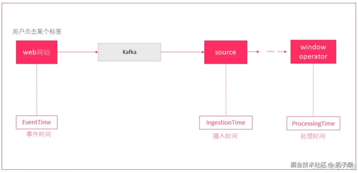 在Flink的流式处理中,会涉及到时间的不同概念, 如下图所示: