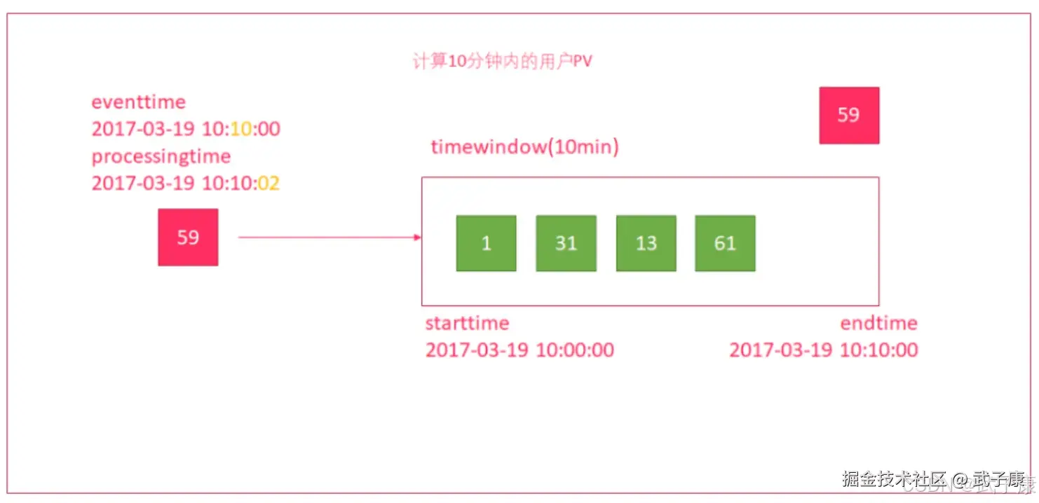 这种处理方式,根据消息进入到Window时间,来进行计算,在网络有延迟的时候,会引起计算误差。