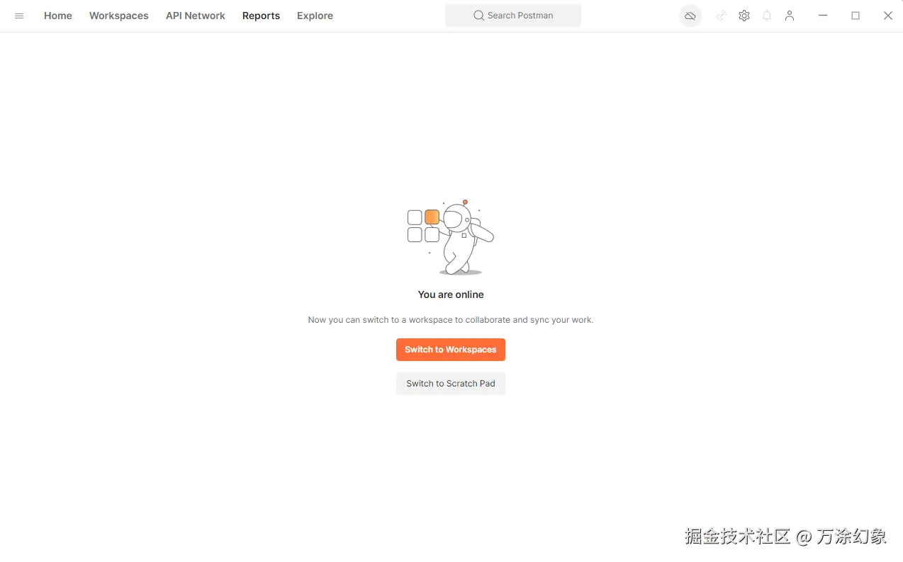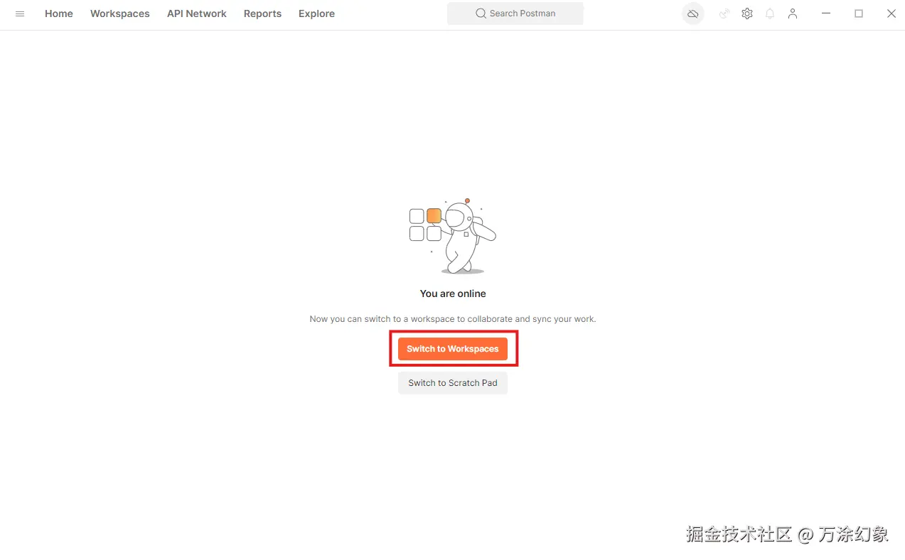 - 关键提醒 :如果是第一次打开,请点击橙色的 **"**Switch to Workspaces" 按钮进入主界面。