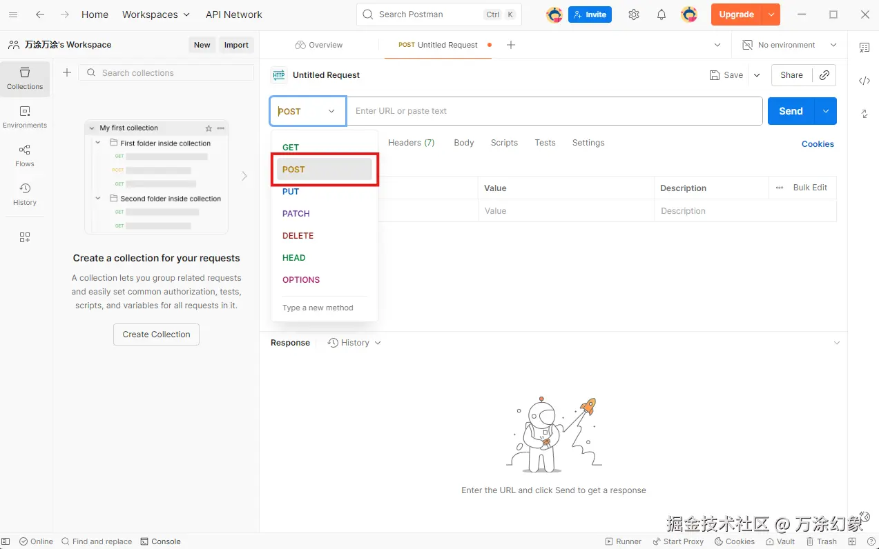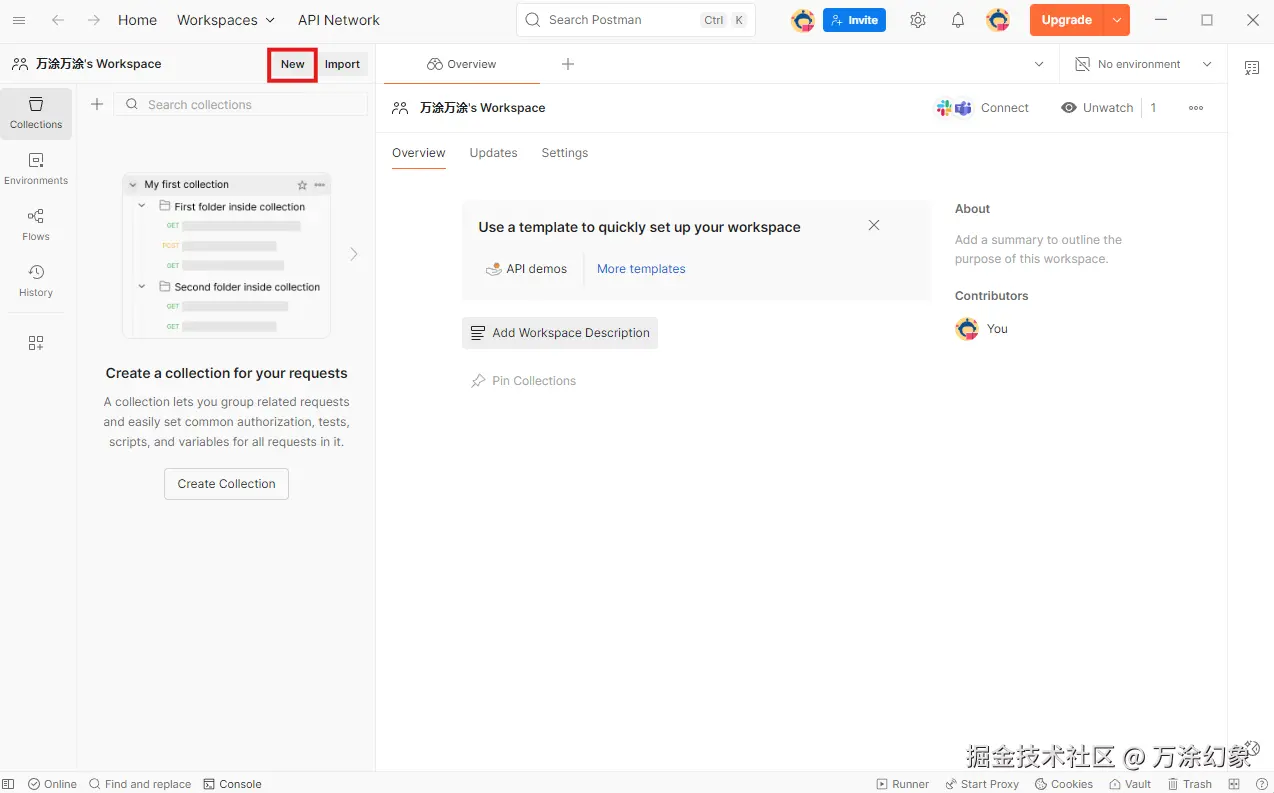 - 在主界面上方,找到 "New" 按钮并点击,来新建一个请求。