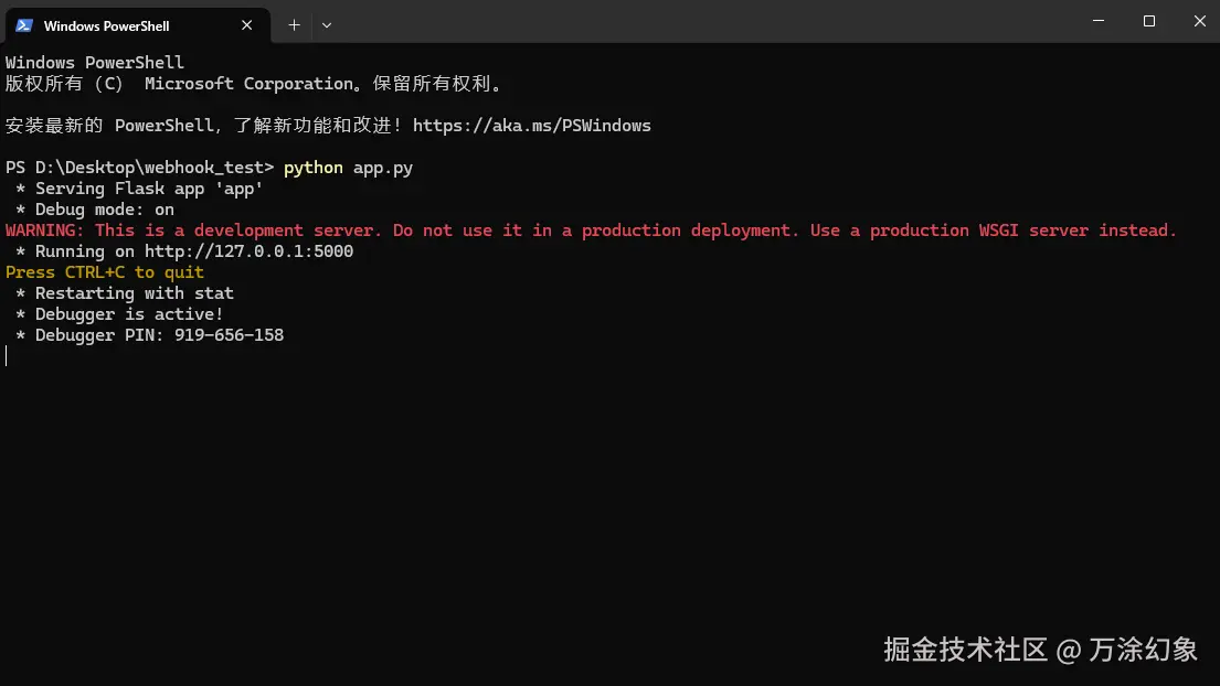 到这里,恭喜你,已经成功在本地跑通了第一个完整的 Webhook 流程!