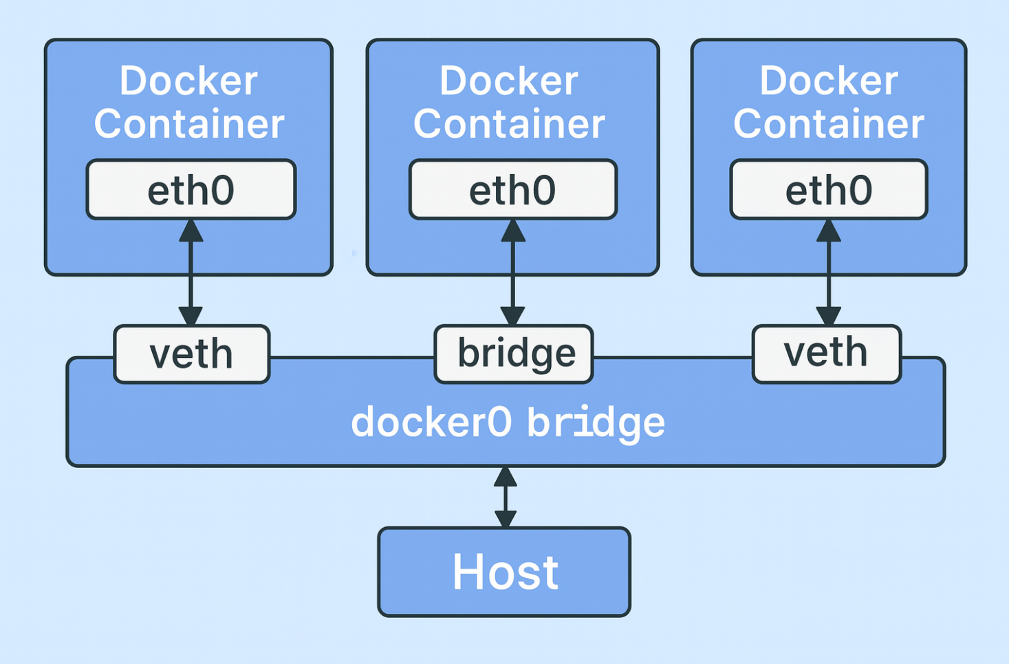 的虚拟网桥,用来让主机和容器在同一子网内通过 IP 直接通信。每个容器都会被分配一个独立的网络命名空间和一个连接到 docker0