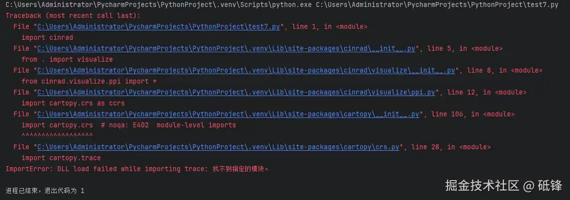 ⚠️ 常见问题: 如果出现不兼容情况,通常是Python版本过高导致。本人的Python版本为Python 3.13,与cartopy-0.25.0版本不兼容所致,错误信息如下所示: