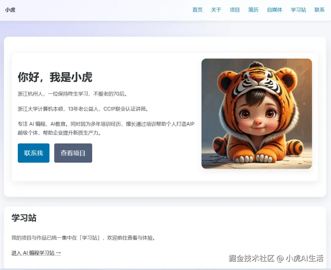 我的目光投向了我们"破局AI编程行动家加强营"里的几位优秀的教练,他们的个人网站都做得非常棒。