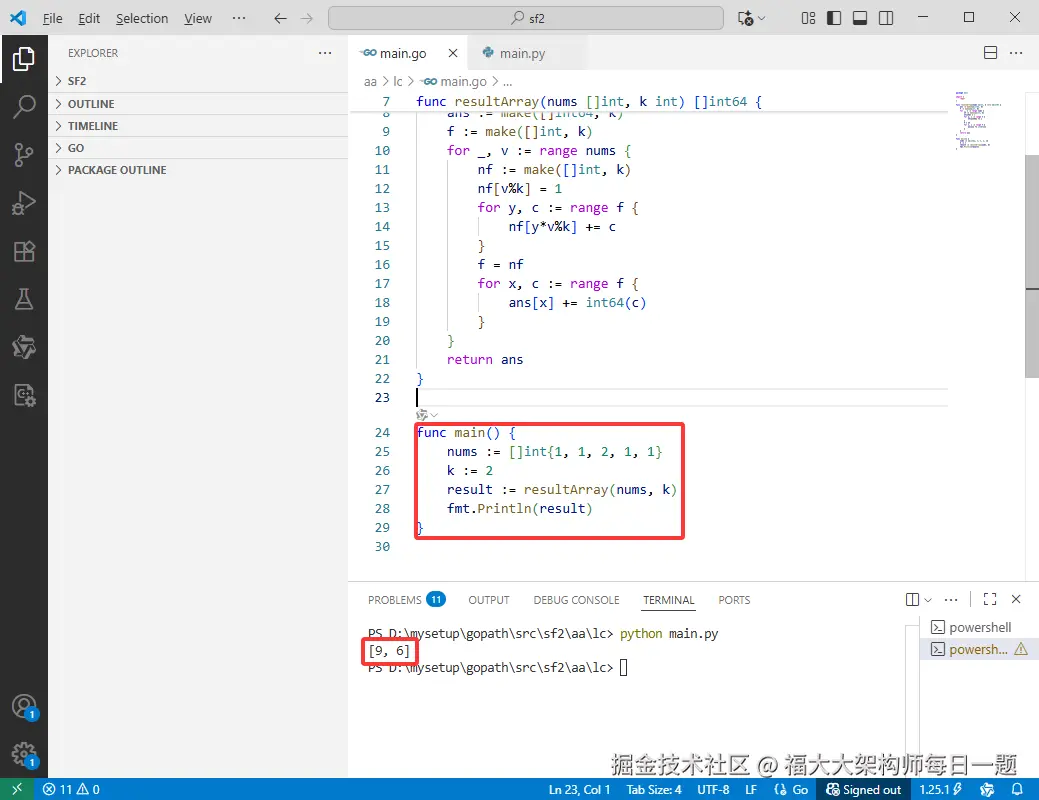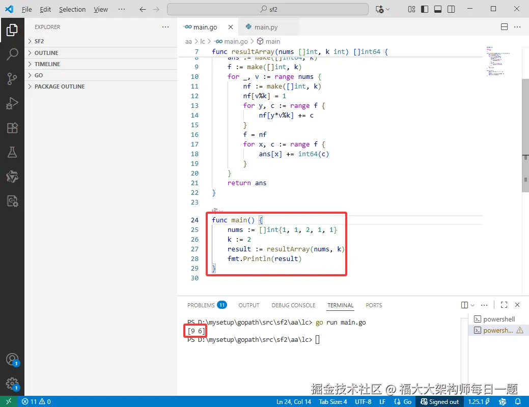 2025-10-11:求出数组的 X 值Ⅰ。用go语言,给定一个只包含正整数的数组 nums 和一个正整数 k。