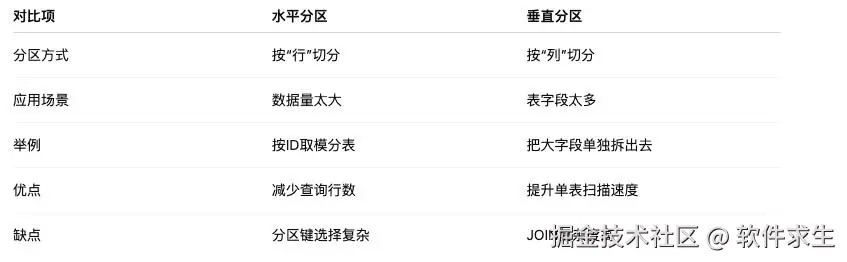 - 水平分区: 就像把一个宿舍的人按学号分到不同宿舍楼。