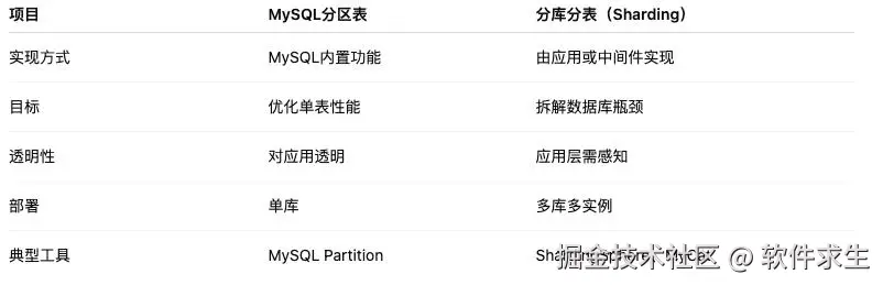 分区表是"单库内部切片",分库分表是"跨库物理拆分"。