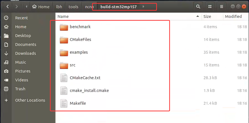 编译完成后,在build-stm32mp157目录下,我们可以看到benchmark目录和example目录,前者目录中的benchncnn就是 NCNN 的基准测试工具,后者目录中是编译完成的样例程序。