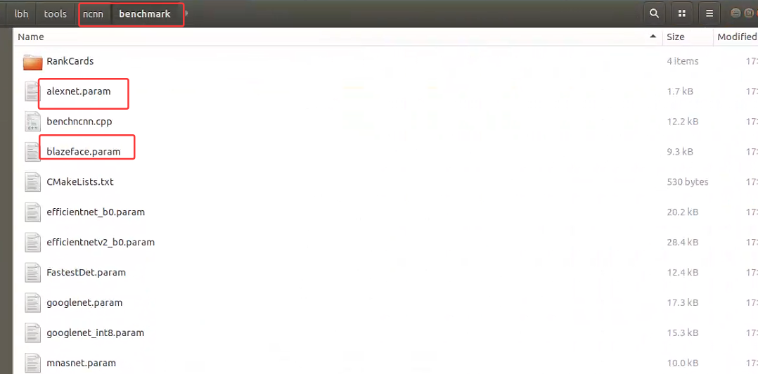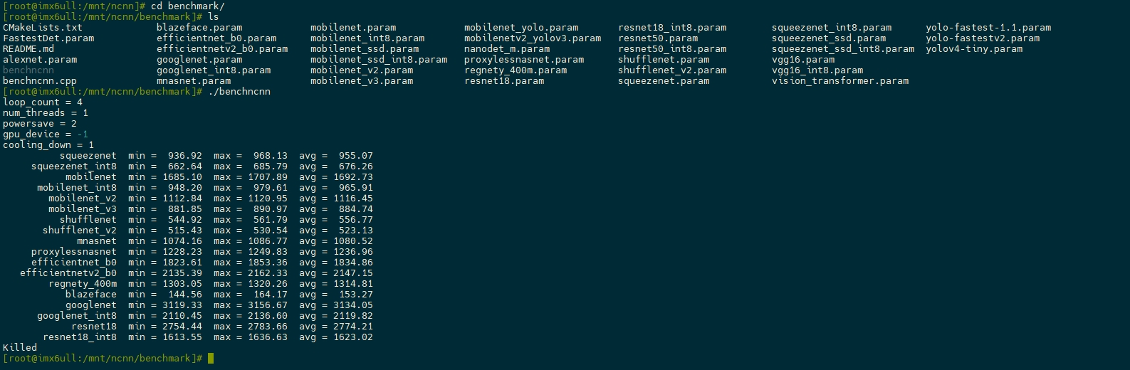 把ncnn/benchmark下的.param文件也放入到/home/root/ncnn/目录下。