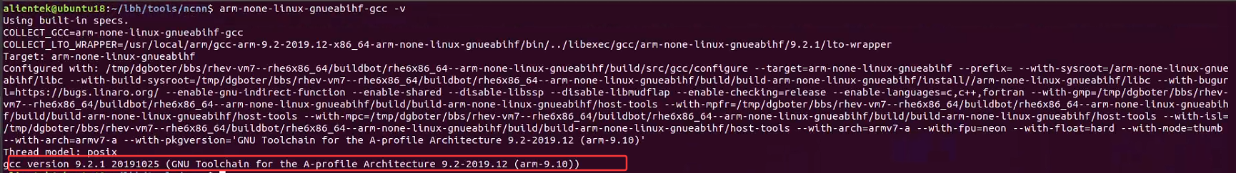 首先验证交叉编译工具链是否安装成功,终端输入命令: