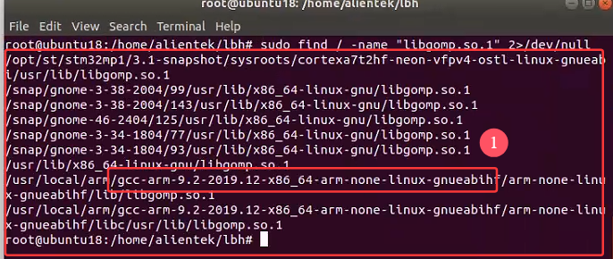 sudo find / -name "libgomp.so.1" 2>/dev/null