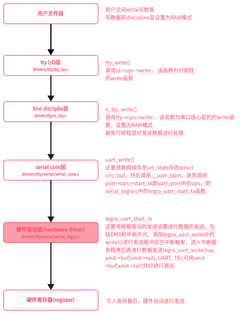 根据整体框架图。针对uart链路进行分析,以串口read和write为例,梳理整体流程如下