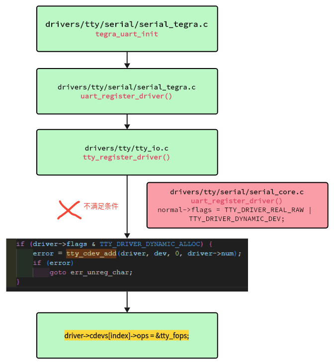 tty_register_driver内部tty_cdev_add函数调用存在条件判断如下: