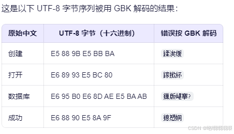 这是典型的 UTF-8 编码字符串被错误地以 GBK(或 CP936)编码解析 所导致的乱码。