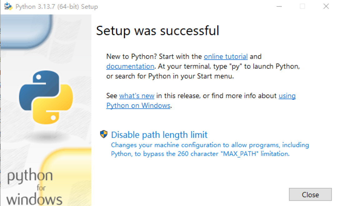 看到下图,显示出了版本号,Python 安装成功。