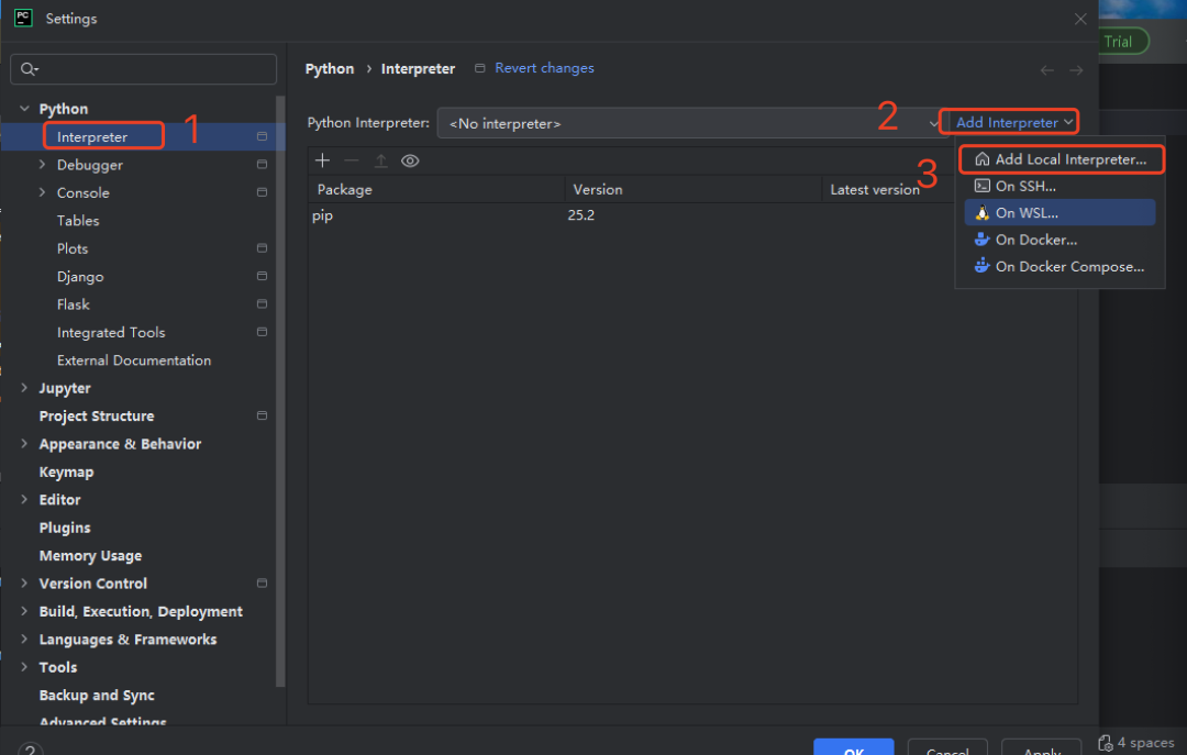 点击 interpreter,选择 Add Local Interpreter