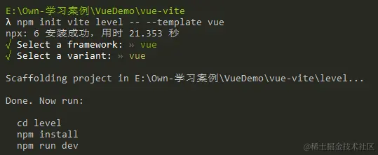 npm init vite <project-name> -- --template vue