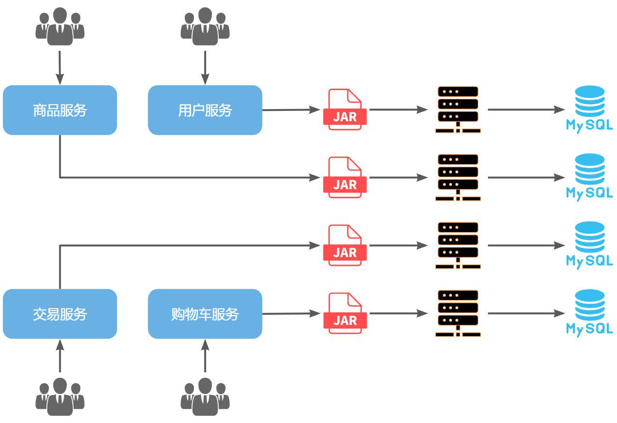 - 每个服务都是独立部署,当有某个服务有代码变更时,只需要打包部署该服务即可