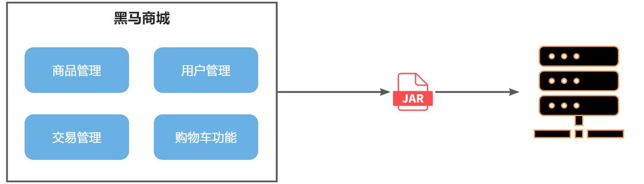 例如,黑马商城项目,我们就可以把商品、用户、购物车、交易等模块拆分,交给不同的团队去开发,并独立部署: