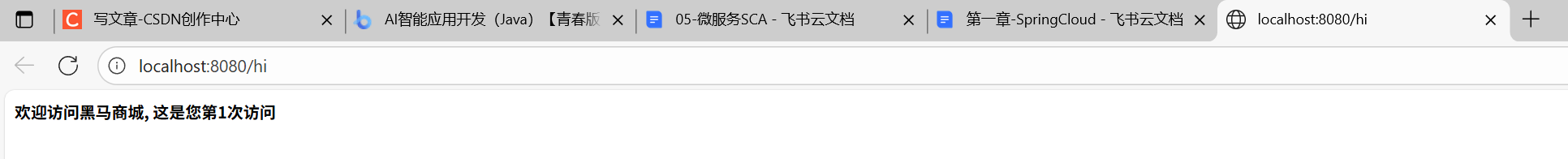启动完成后,试试看访问下 http://localhost:8080/hi 吧!