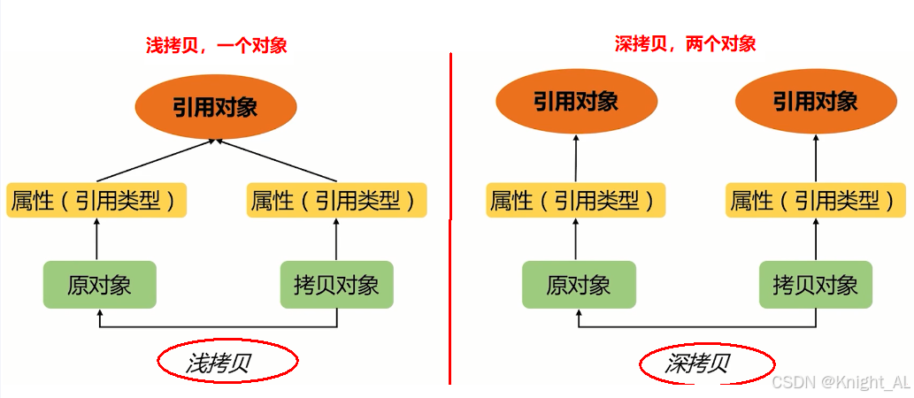 深拷贝复制源对象的所有属性,包括所有引用类型的对象,因此源对象和拷贝对象完全独立。