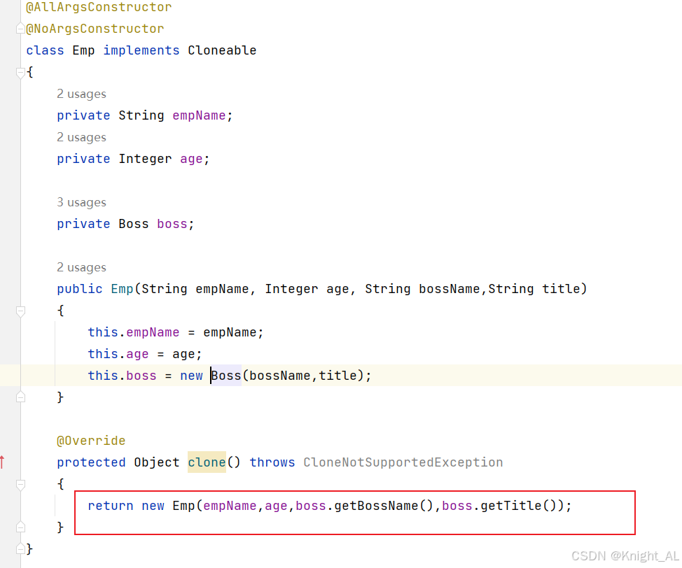 class Emp implements Cloneable