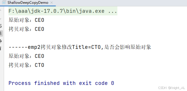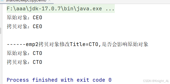 System.out.println("------emp2拷贝对象修改Title=CTO,是否会影响原始对象");