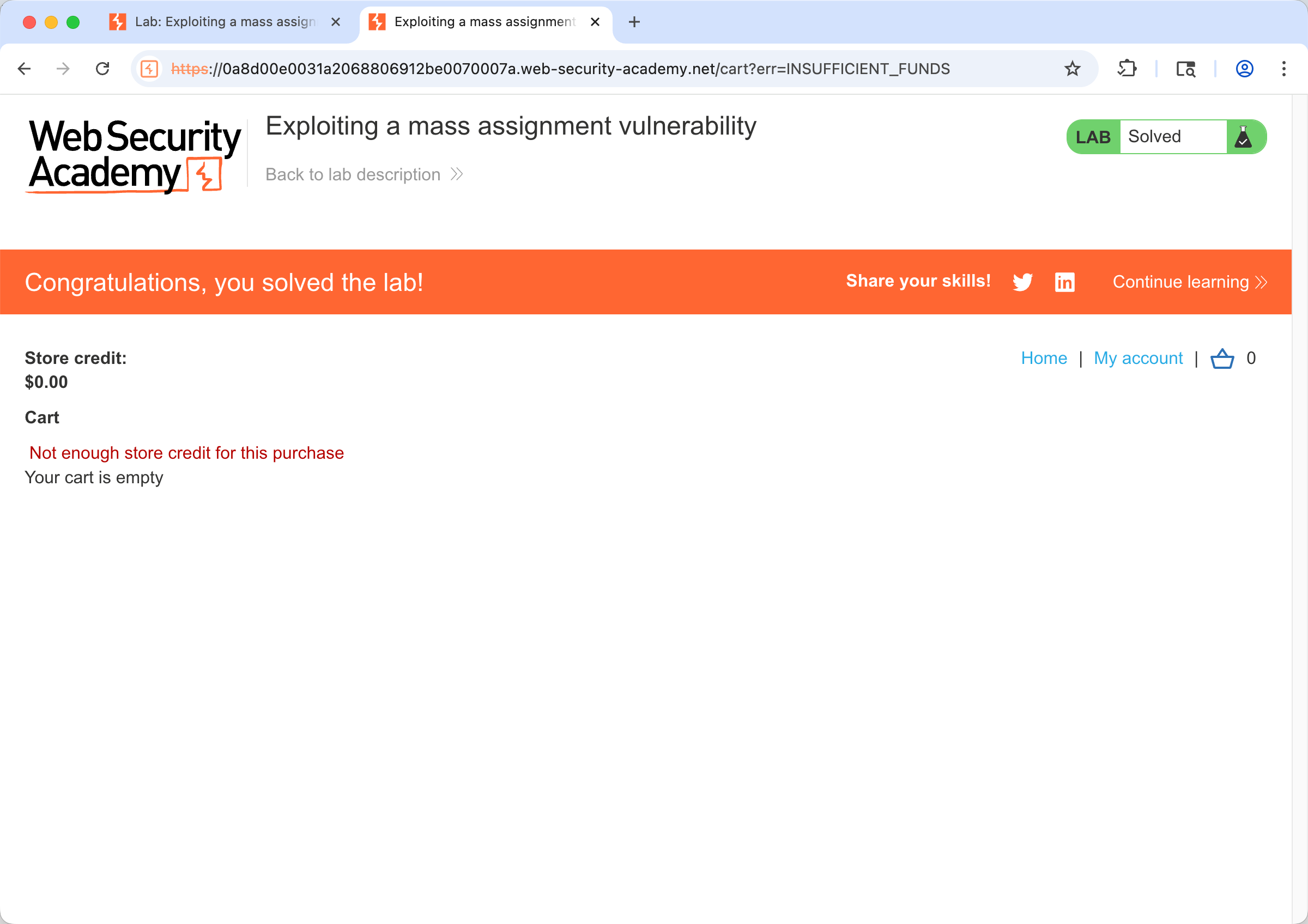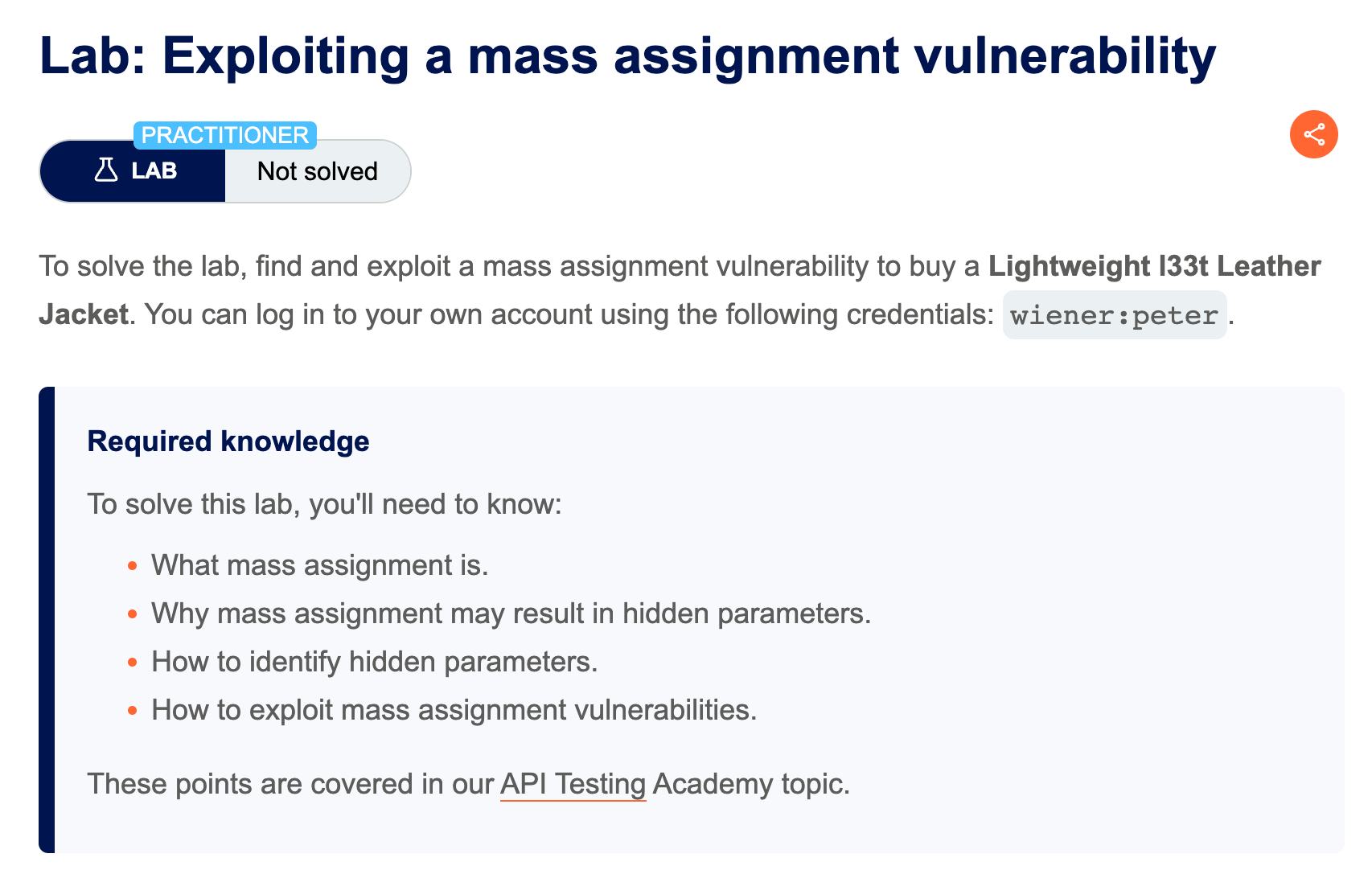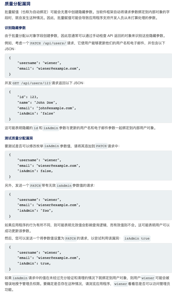 这个实验的核心是利用批量赋值 (Mass Assignment) 漏洞,这是Portswigger提供的所需的理论知识。