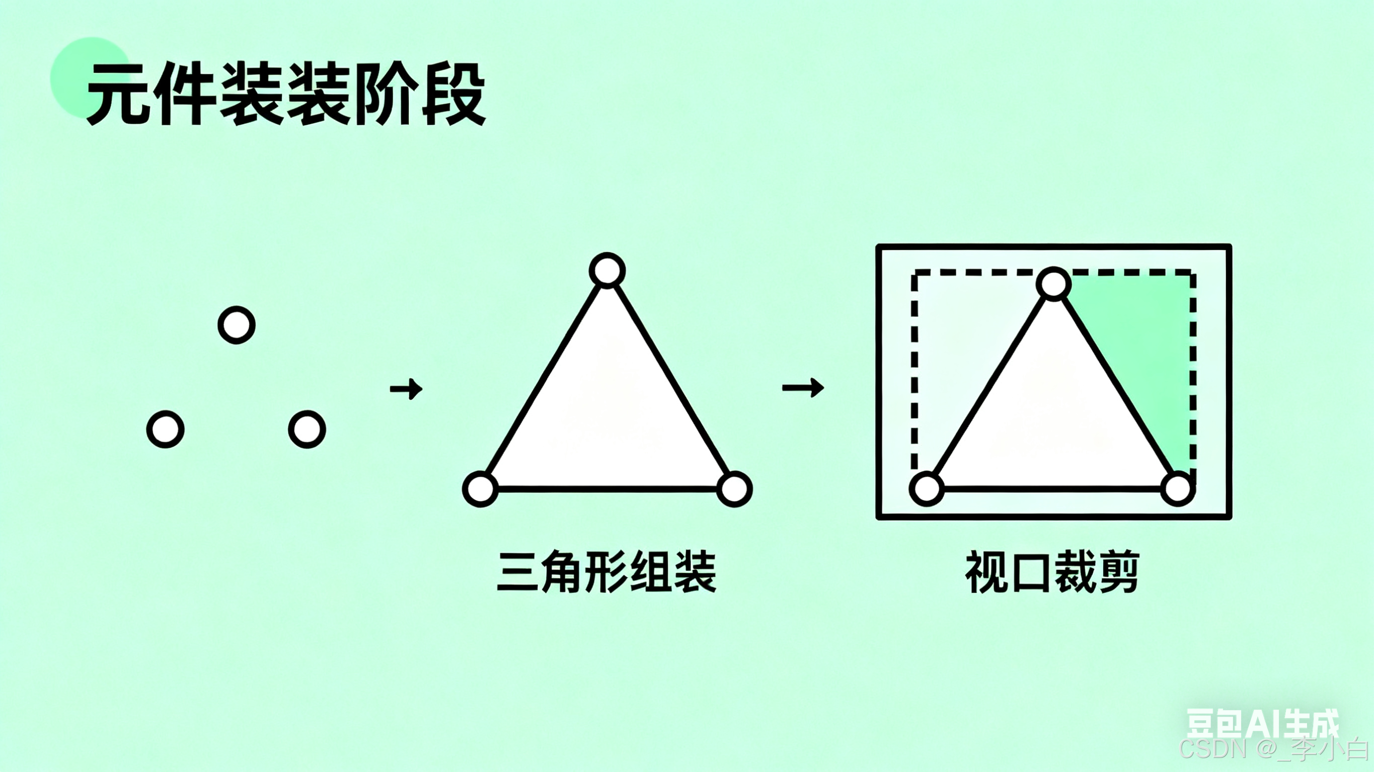 这个阶段就像"仓库管理员":把这些零散的顶点数据按规则打包(比如"3个顶点一组,组成一个三角形"),确认数据格式没问题后,整齐地送到下一个加工环节。