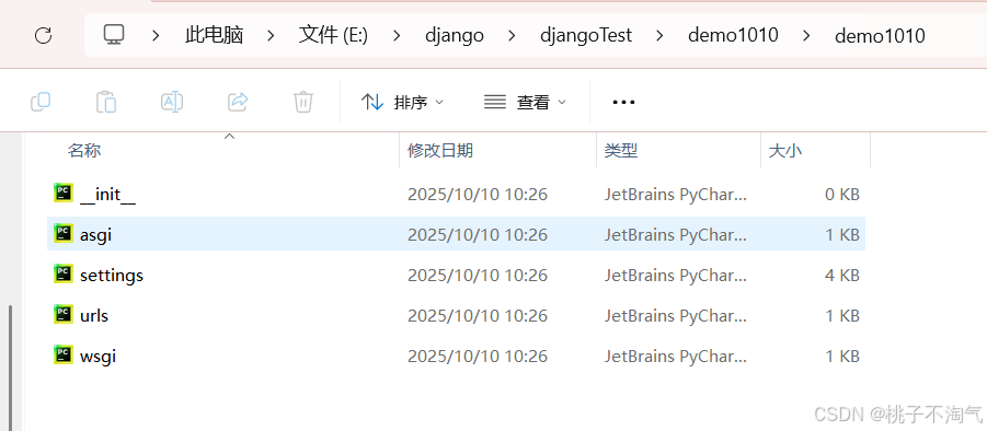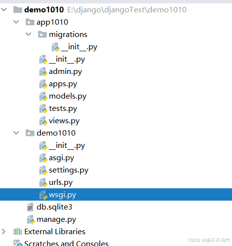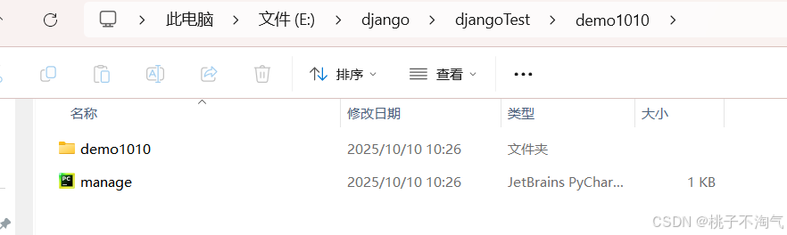 里面是一个"demo1010"的文件包,加上manage.py文件,打开demo1010文件夹,里面文件如下。