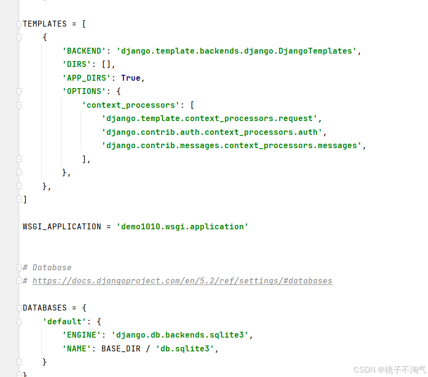 虽然不懂,看着这两块地方也是我们以后要更改的地方,这里默认提供了Django的自带数据库sqlite3,如果要换db,这里的默认库要改,至于host,顾名思义,如果启动项目需要别的(非本机)服务器等访问,得加上要访问的机器Ip.