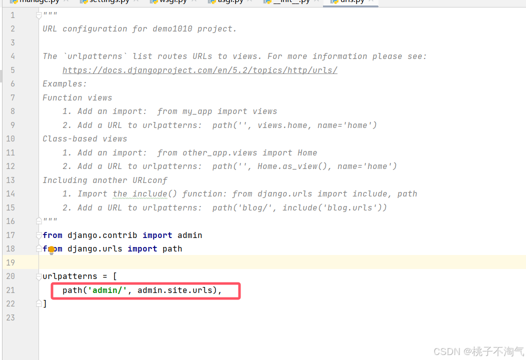 Django 项目的 URL 声明文件,如果之后要增加页面,需要网页能跳转到新的页面上去,必须要在这个文件声明。