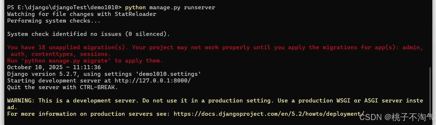 进入项目路径,启动项目。这里就用到前面的manage.py了。
