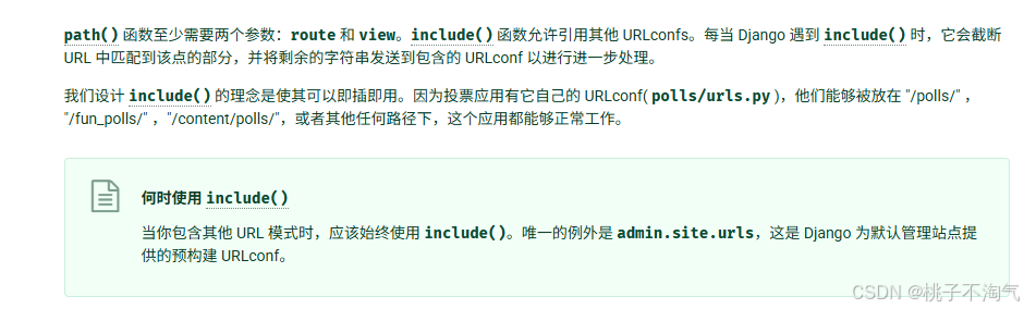 urlpatterns是个列表,直接在后面新增path即可,因为跳转的url不同(需要到app下面去找url,用include函数)