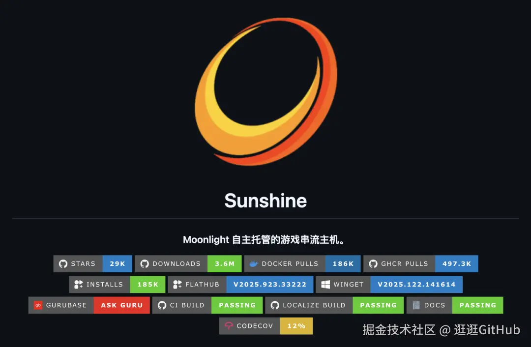 这个开源项目是逛 X 的时候淘到的,叫做 Sunshine 还挺火的。